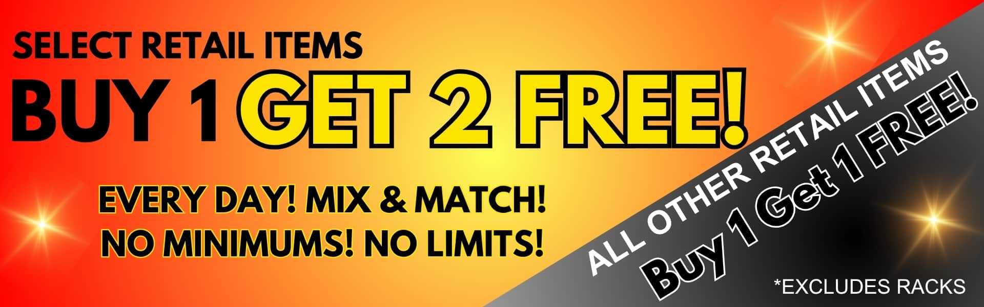 You can buy wholesale or retail, no minimum on wholesale either. And they send out coupons or have online coupons you can get buy 1 get 2 free, instead of the usual buy 1 get 1 free. Due to having to use a walker, they were super friendly and one of the girls left her register to help me do my shopping. Will definitely become my yearly 4th of July place from now on.